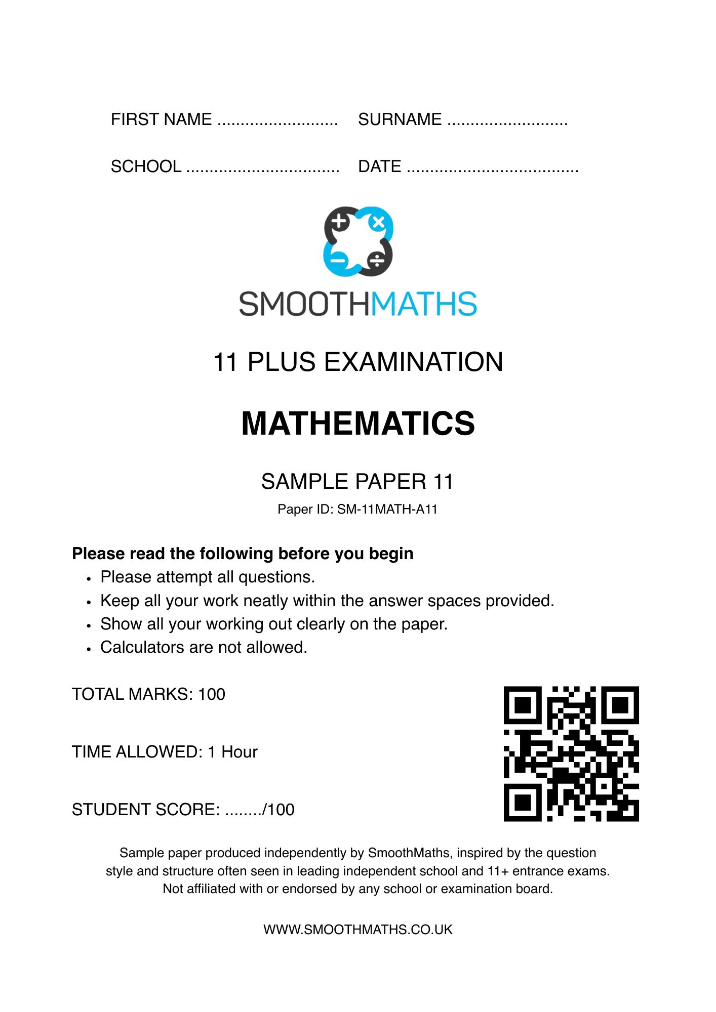 ISEB 11 Plus Sample Paper by SmoothMaths